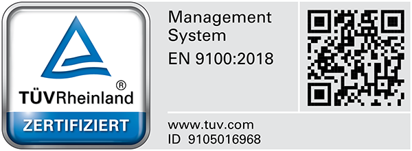 Seit 2018 sind wir nach EN 9100:2018Luft- und Raumfahrt zertifiziert.